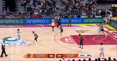 第四節(jié)最后2分鐘,憑借奎因胡明軒2次反擊突破,廣東96-93領先北控,焦泊喬5犯畢業(yè),比賽來到白熱化階段,杜鋒一口氣連換3人,張慶鵬換回佩里,球權全都交給廖三寧處理,最后1分鐘,廖三寧接連命中關鍵中投+拋投連得4分,廣東最后一攻,徐杰拋投不進,廖三寧抓住機會,在比賽最后階段頂著徐杰,打進了超高難度的拋投絕殺!