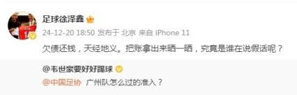 媒體人“足球徐澤鑫”寫道:“欠債還錢,天經地義。把賬拿出來曬一曬,究竟是誰在說假話呢?”